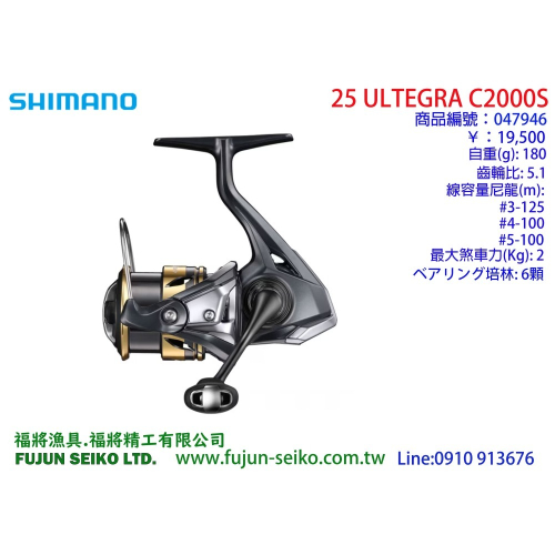 【福將漁具】Shimano紡車捲線器 25 ULTEGRA 系列