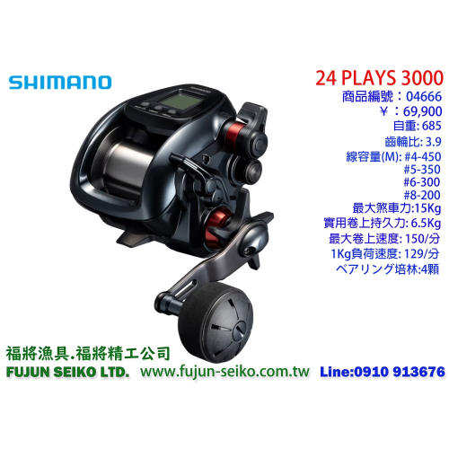 【福將漁具】Shimano電動捲線器 24 PLAYS 3000