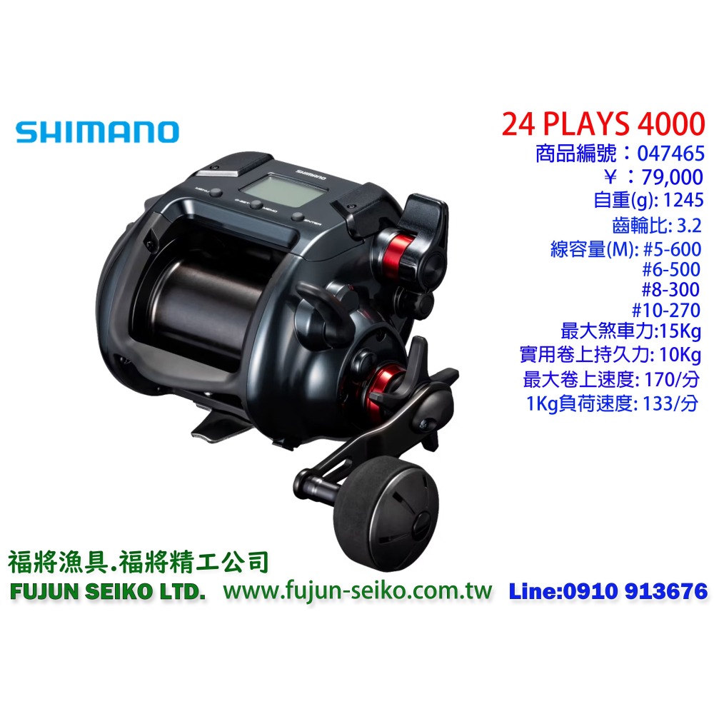 【福將漁具】Shimano電動捲線器 24 PLAYS 4000
