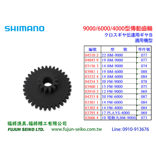【福將漁具】Shimano電動捲線器 9000/6000/4000 齒輪-B