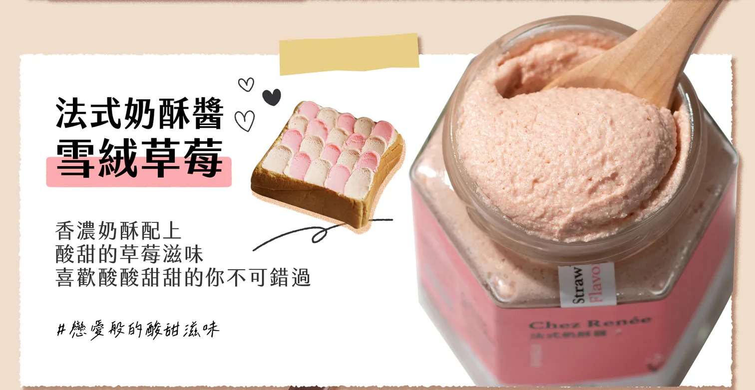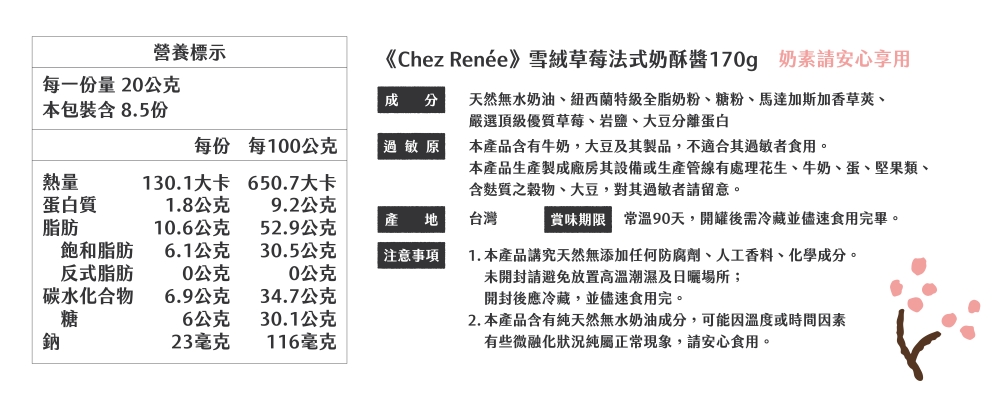 ※ 使用純天然草莓不添加任何一滴食用色素,因此每批色澤會有些微差異,但使用草莓份量都相同請消費者放心
