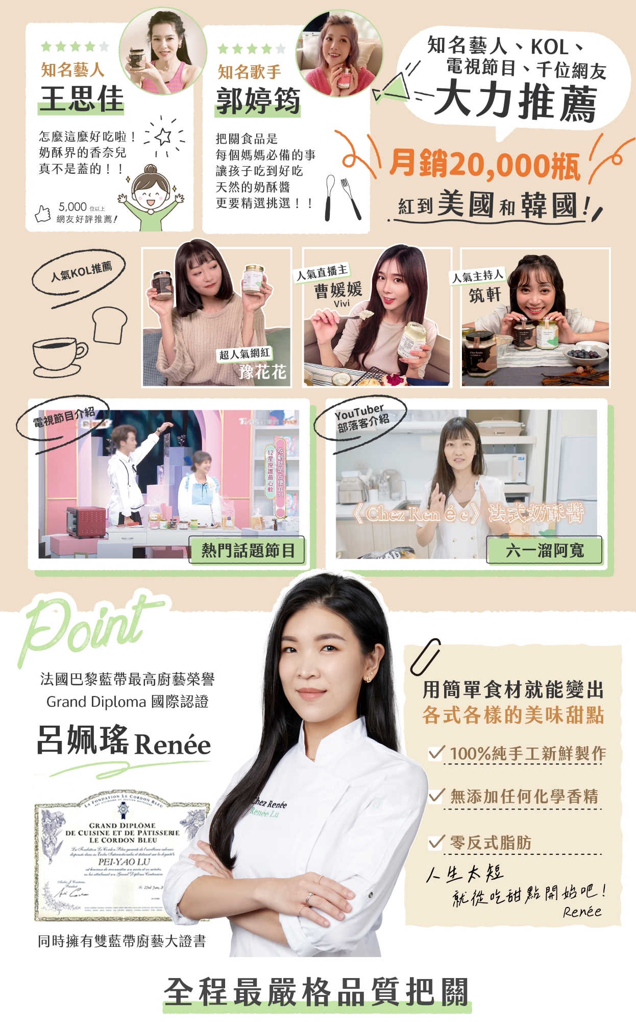 由擁有「法國巴黎藍帶主廚」Chez Renée親手製作,