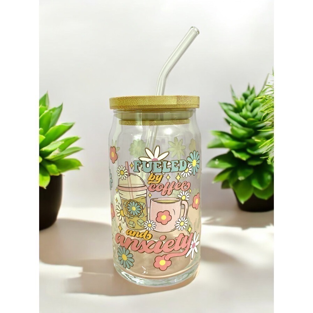 易開罐造型玻璃杯470ml 水杯 雞尾酒派對 家庭聚會 招待客人 吸睛的杯子 ( 附竹蓋、吸管)