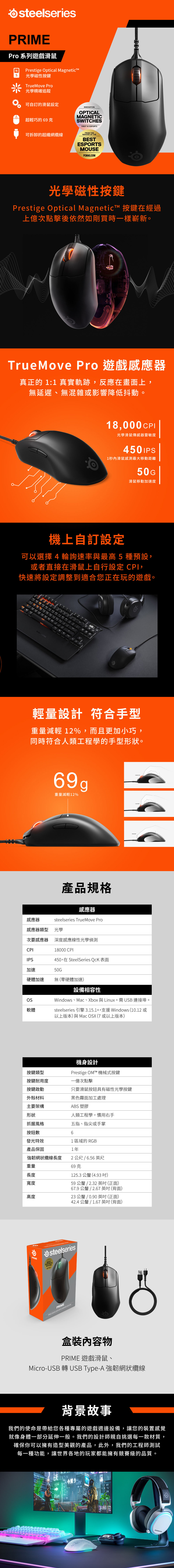 與頂級電競專業選手共同開發的超輕巧的 69 公克,以及霧面設計