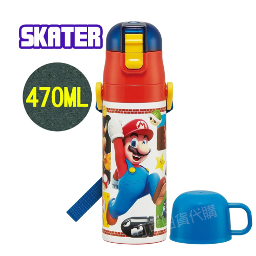 【可可日貨】日本 skater 超輕量 兩用式 不鏽鋼 保冷 保溫杯 ( 瑪利歐) 470ML SKDC4 水壺