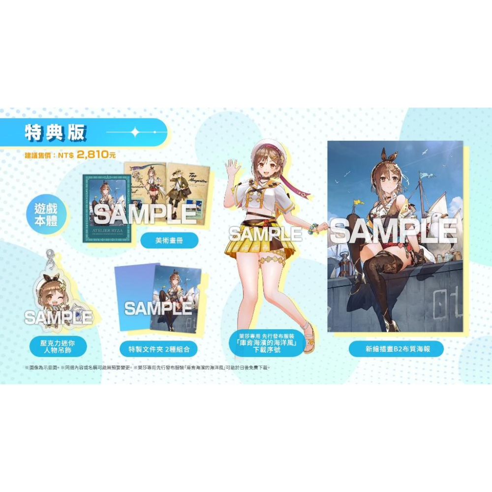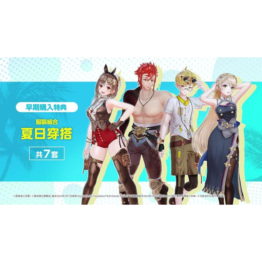 💎本賣場為正版遊戲販售通路商,請安心購買💎 💎遊戲片均全新未拆封💎 (封面包裝參考示意圖,請以實際出貨為準!) ⭐遊戲名稱:萊莎的鍊金工房 3∼ 終結之鍊金術士與秘密鑰匙~ 中文版 ⭐遊戲類型:煉金術角色扮演 ⭐發售日期:2023/03/23發售 ⭐遊戲人數:1人 ⭐級別:待訂 ⚠️特典依照官方公佈為主,如數量不足將依照訂單順序配分,請提早預購 遊戲介紹: 與萊莎共度的最後一個夏日冒險,即將啟程   本作以鍊金術的根源、世界之謎以及萊莎與同伴們各自的目標終點為主題,描繪出符合萊莎等人最後冒險的最終樂章 作為新要素,本作中的原野由多個地圖無縫連接而成,無需載入地圖即可自由移動   「鍊金工房」系列最大級別的原野充滿生機,帶領同樣是本系列最高級別的 11 名隊伍成員,踏上更加自由的冒險之旅吧 ⚠️本產品不含主機、收納包、Joy-Con充電握把、方向盤等其他配件,如有需要請在本賣場的其他商品頁面選購 https://s-cf-tw.shopeesz.com/file/tw-11134202-7r992-lmq42ya5i109f4 https://s-cf-tw.shopeesz.com/file/tw-11134202-7r98z-lmq42ylt0z2x59 https://s-cf-tw.shopeesz.com/file/tw-11134202-7r98q-lmq42yqiu2l5b9 https://s-cf-tw.shopeesz.com/file/tw-11134202-7r98z-lmq42yuynkijd7 https://s-cf-tw.shopeesz.com/file/tw-11134202-7r98v-lmq42yzoi2s951