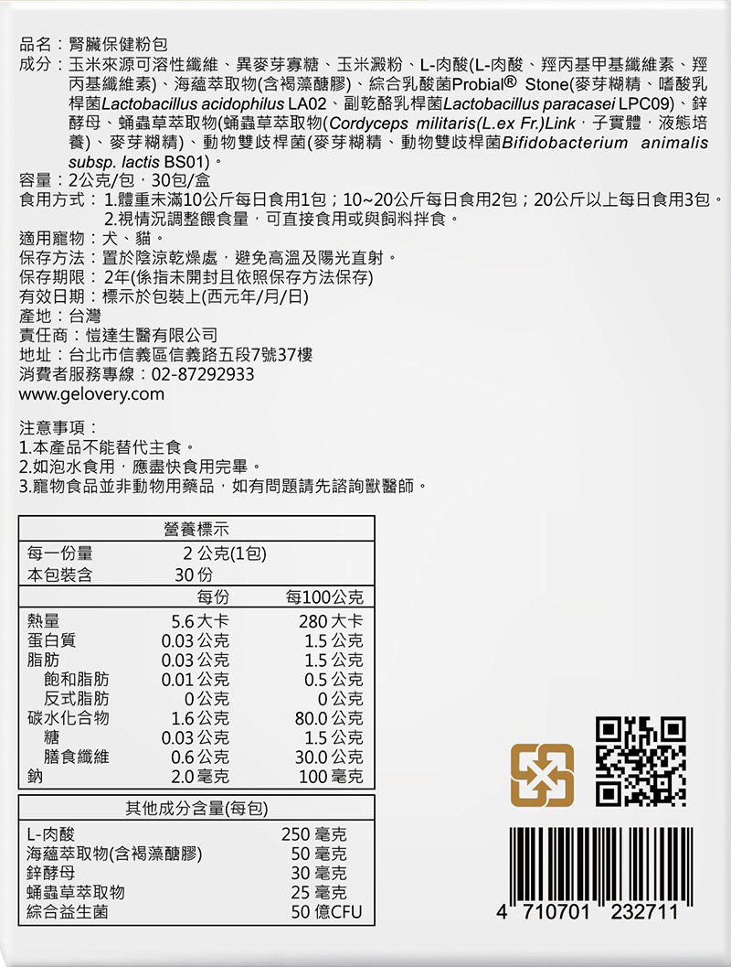 Gelovery 歐萊寵物腎臟保健粉包『 單盒 30包』(效期:2027.03.12)