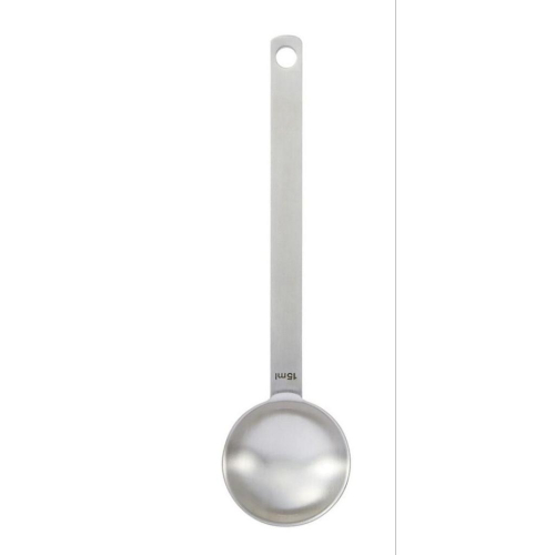 握柄長, 可輕鬆深入瓶底挖取殘留 的調味料 刻有2分之1的標示 半匙也可輕易測量 材質:本體:18-8 不鏽鋼 規格:約15ml 約5*19.5cm