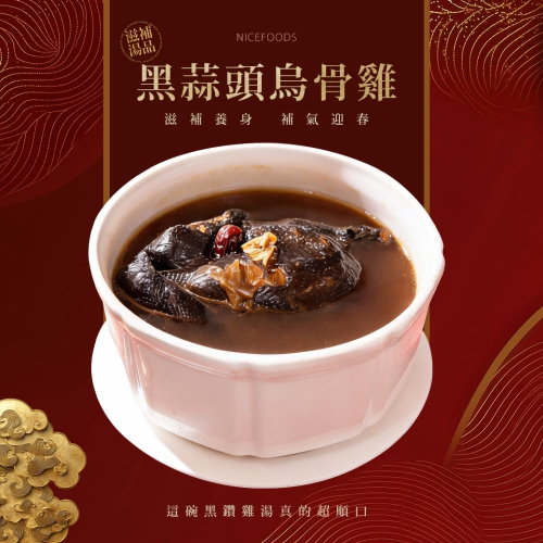 珍稀黑蒜與烏骨雞的組合,是年菜桌上獨樹一格的養生奢華品。湯頭經長時間燉煮,精華盡出,滴滴醇厚。讓這份獨特的甘甜滋味,為您的年夜飯增添一抹尊榮與不凡的品味。