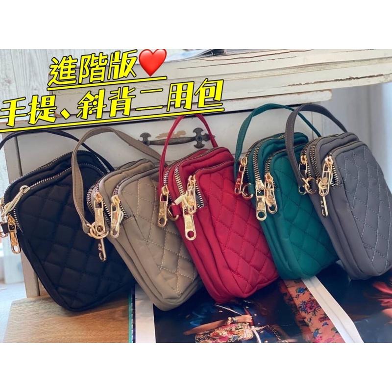 韓國🇰🇷空運~🔥現貨~💜韓國手提斜背包~🔥好評回歸‼️質感尼龍菱格紋手機包💜~手提包~多格層斜背包~手機包