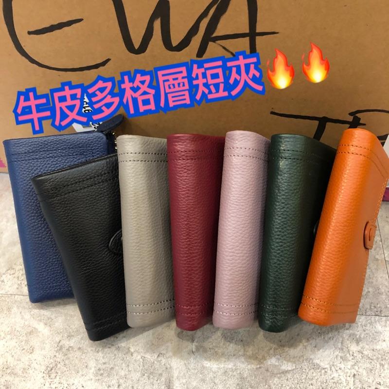 韓國🇰🇷空運~《🔥現貨♦免運‼️》 💜韓國真皮短夾~❤️牛皮壓釦短夾~皮夾~牛皮材質~多格層短夾~手拿包
