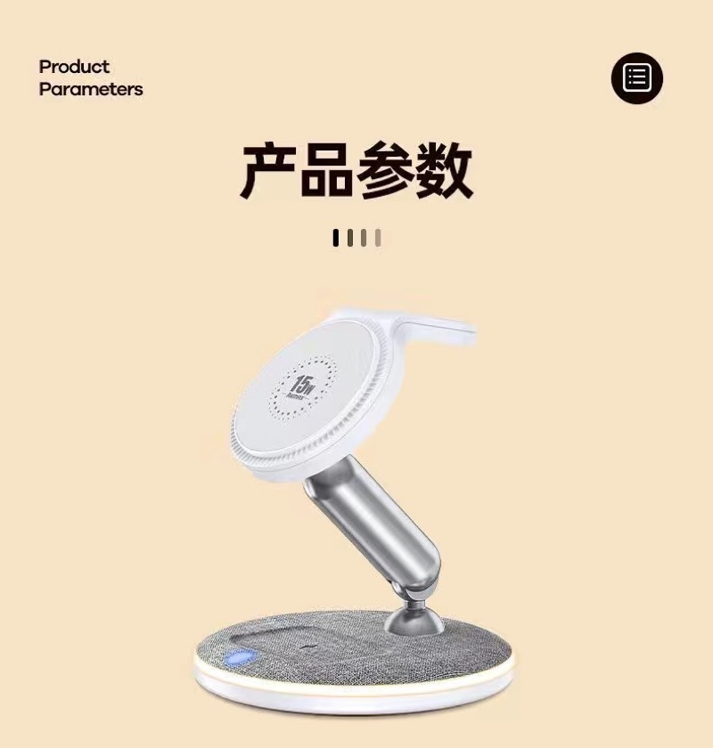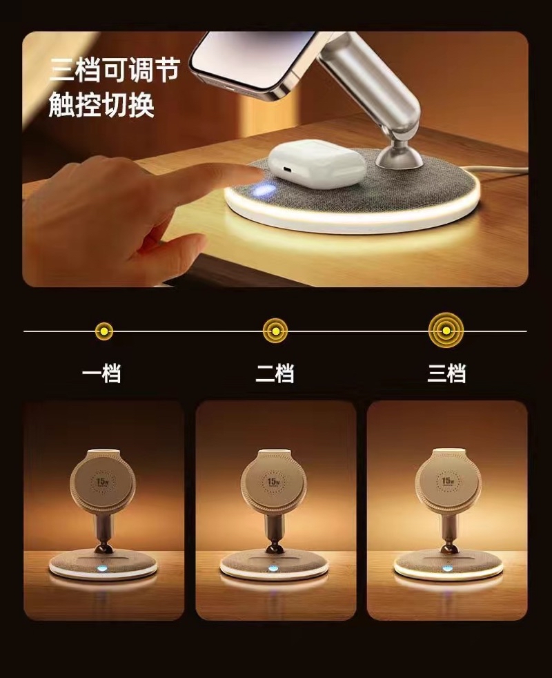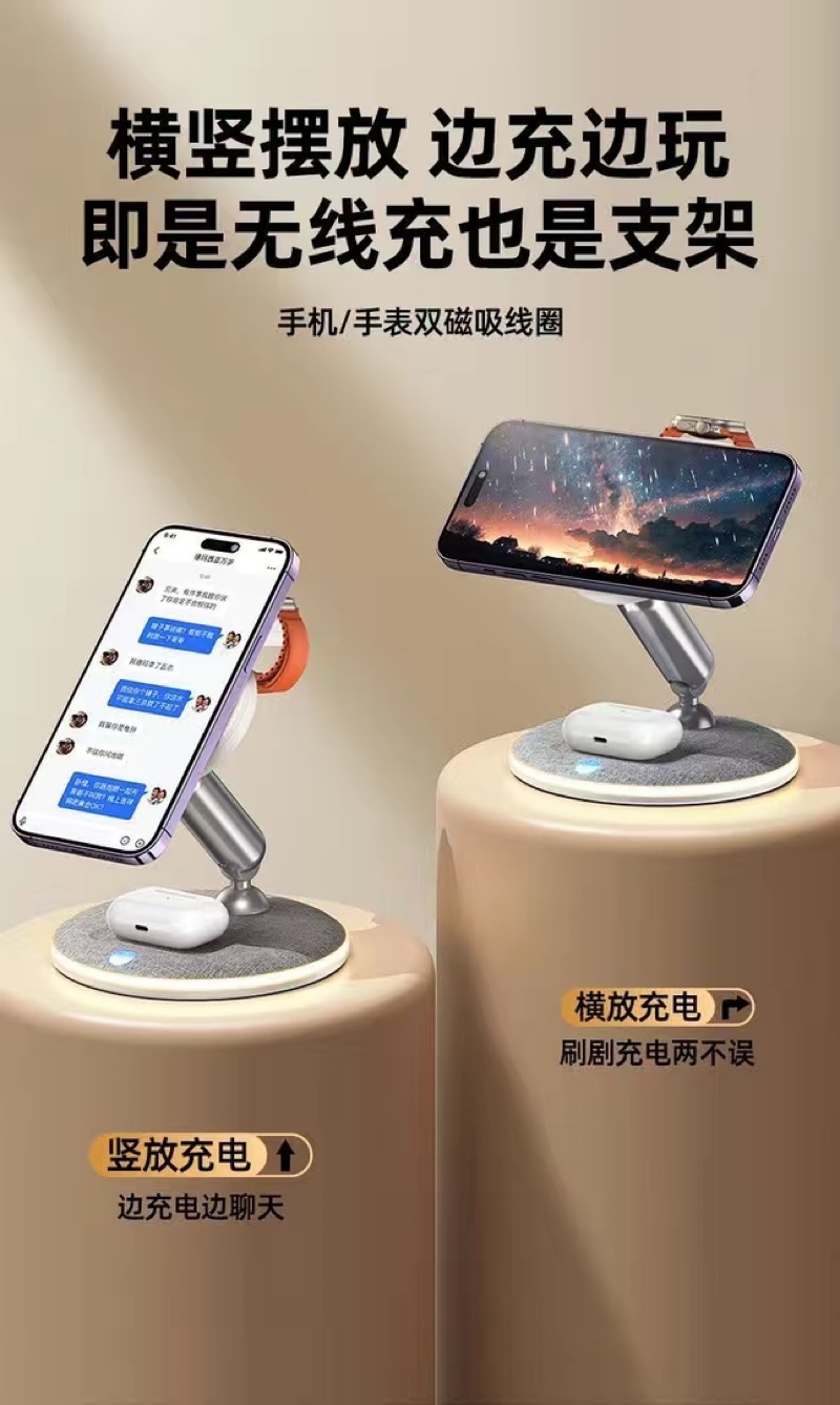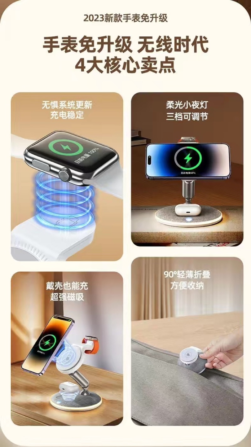 REMAX新款無線充電器三合一手機手錶耳機同時充磁吸magsafe快充適用蘋果白色柔光夜燈
