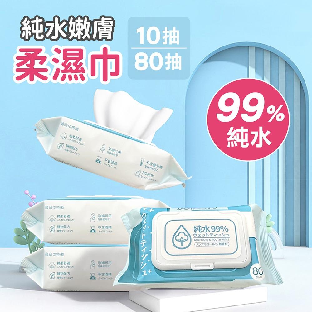 含水升級【純水嫩膚柔濕巾 10抽/80抽】純水濕巾 無酒精濕紙巾 隨身濕紙巾 擦手巾 溼紙巾 有蓋濕紙巾 嬰兒濕紙巾