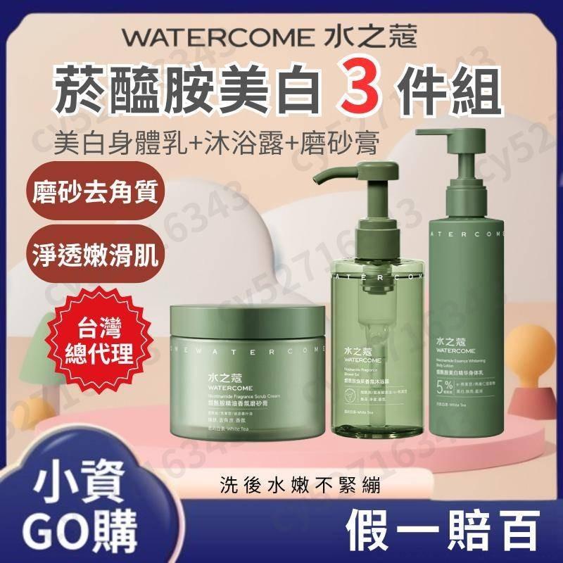 ✅台灣總代理【水之蔻磨砂膏美白三件組】平滑肌+美白身體乳 專利配方 拋光肌 磨走疙瘩肌 沐浴露 果酸嫩膚 菸醯胺 磨砂膏