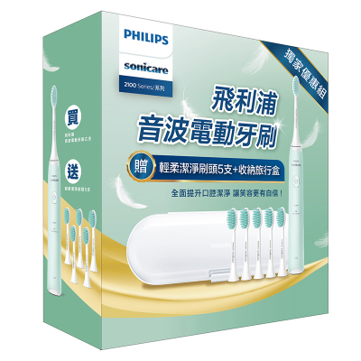 【Philips 飛利浦】軟毛音波震動牙刷禮盒組-薄荷綠(HX2421) <1Set台 x 1 x 1Set台>