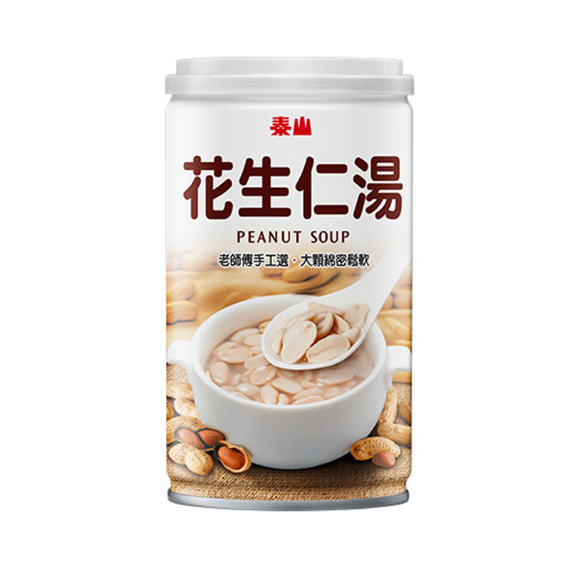 商品名稱 花生仁湯 內容物成分 水、花生、蔗糖、品質改良劑(碳酸鈉、多磷酸鈉、焦磷酸鈉) 內容量 320g/罐 固形量 58g/罐 營養標示 每一份量320公克,本包裝含1份 熱量326大卡、蛋白質7.4公克、脂肪12.2公克、飽和脂肪2.1公克、反式脂肪0公克、碳水化合物46.7公克、糖29公克、鈉115毫克 注意事項 開罐前請搖均勻,請勿直接入微波爐加熱,保溫請勿超過72小時(60℃)。附湯匙蓋方便食用,請小心使用 原產地(國) 台灣 保存期限 2年 有效日期 距有效日期至少大於30日以上(以實際包裝標示為準) 廠商名稱 泰山企業股份有限公司 廠商電話 0800-079-080 廠商地址 彰化縣田中鎮興工路6號 投保產品責任險字號 132709AKP0000079(新光產物保險) 食品業者登錄字號 N-159661701-00000-6