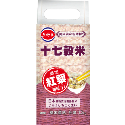 成分: 蓬萊糙米(台灣)、秈稻糙米(台灣)、大麥仁(澳洲、美國、荷蘭、烏克蘭)、小米(中國、美國)、蕎麥(中國)、紅小麥(美國)、麥片(澳洲、美國、荷蘭)、高梁米(印度、澳洲)、黑糯米(台灣)、綠豆仁(緬甸、泰國)、黃碗豆仁(加拿大、烏克蘭)、米豆(緬甸、秘魯)、黑豆(中國)、紅豆(台灣、澳洲、美國、加拿大)、紅扁豆(澳洲、美國、加拿大)、燕麥粒(澳洲、智利、英國、加拿大)、紅藜麥(秘魯)