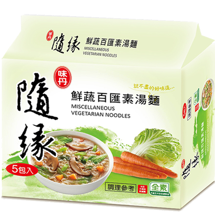 調味粉包:食鹽、味精、脫水紅蘿蔔(含葡萄糖)、脫水敏豆(含葡萄糖)、脫水小白菜(含葡萄糖)、脫水香菇(含麥芽糊精、葡萄糖、食鹽)、脫水海帶芽、白胡椒粉、水解大豆蛋白、調味劑(5-次黃嘌呤核磷酸二鈉、5-鳥嘌呤核磷酸二鈉)、辣椒粉。