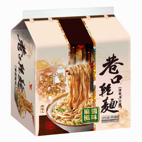 巷仔口的麵攤,你我記憶中的美好滋味! 為了帶給消費者仿如麵攤現煮的回味, 2011年巷口乾麵上市,推出如同老師傅手揉厚實麵感的非油炸麵身,搭配傳統工法炒煮的濃郁醬料,呈現如麵攤現煮乾麵的熟悉美好滋味!讓消費者在家中也能像在麵攤裡輕鬆自在、大口涮嘴的享受麵攤好味道。 厚實麵體:採用頂級澳洲黃金小麥研磨麵粉,經非油炸製麵技術多道壓延揉打、高濕度蒸炊熟化、控溫控濕乾燥,成就具備「寬、Q、捲」多層次咬感的厚實麵體。 濃郁醬料:堅持傳統炒煮工法,以嚴謹的炒煮流程,調合多種醬料,呈現出濃郁的醬香美味,食用後回味無窮!