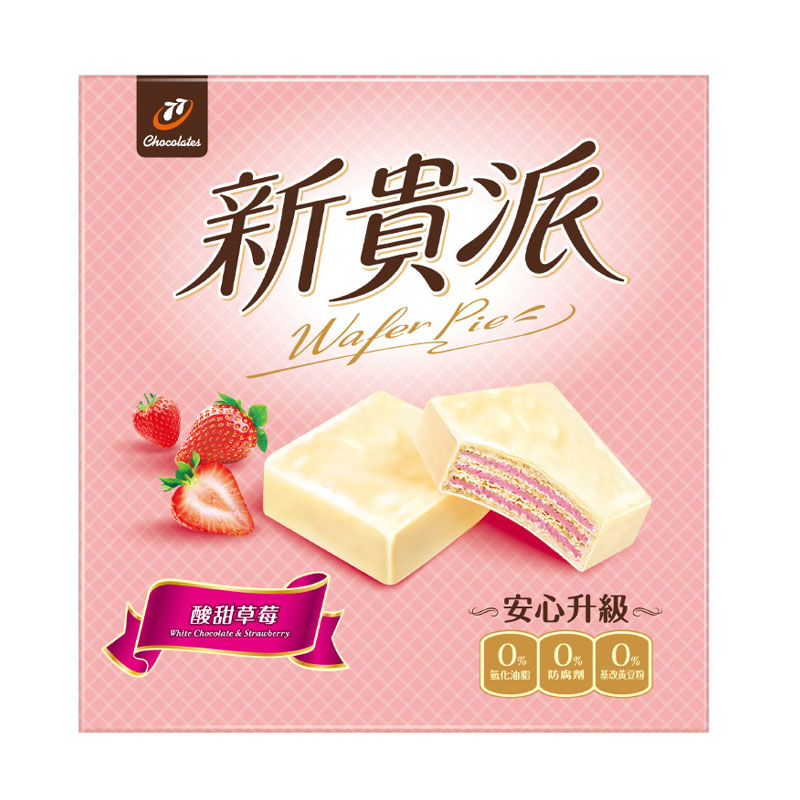品牌名稱 77 包裝組合 盒裝 類型 糖果餅乾 產地 台灣 商品規格 1.商品品名:77 新貴派巧克力-草莓