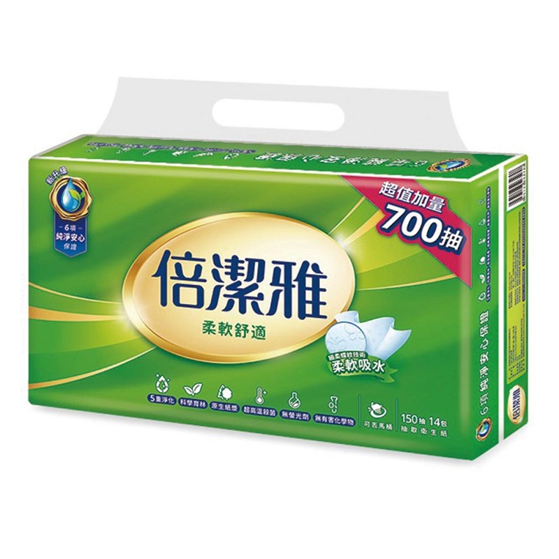 倍潔雅柔軟舒適抽取衛生紙(150抽/包) <150PC抽 x 1 x 14PC包>