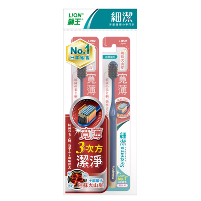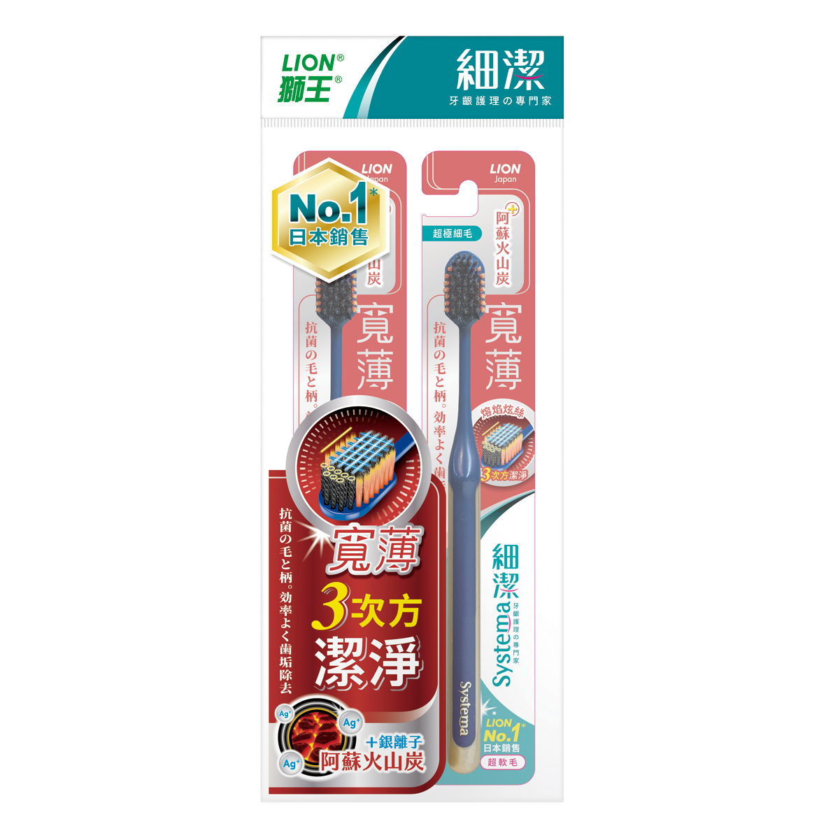 獅王細潔寬薄牙刷炭能抗菌2入 <2PC支 x 1 x 1Bag袋>