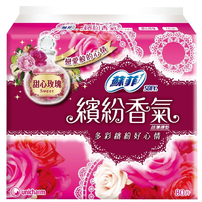 【家樂福】蘇菲繽紛香氣超薄護墊玫瑰甜心-80片 x 1包