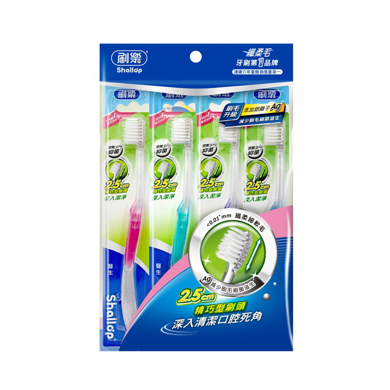 ◆0.01mm 長短纖柔毛添加銀離子Ag+ 長尖毛深層清潔齒縫、短圓毛徹底清潔齒面;刷毛添加銀離子成份,可幫助抑制細菌於刷毛上滋生。 ◆2.5 cm 小巧刷頭 深入口腔,更易深入臼齒區清潔 ◆防滑軟矽膠刷柄 符合人體工學設計一體成型好握不脫手,保護細嫩牙齦。