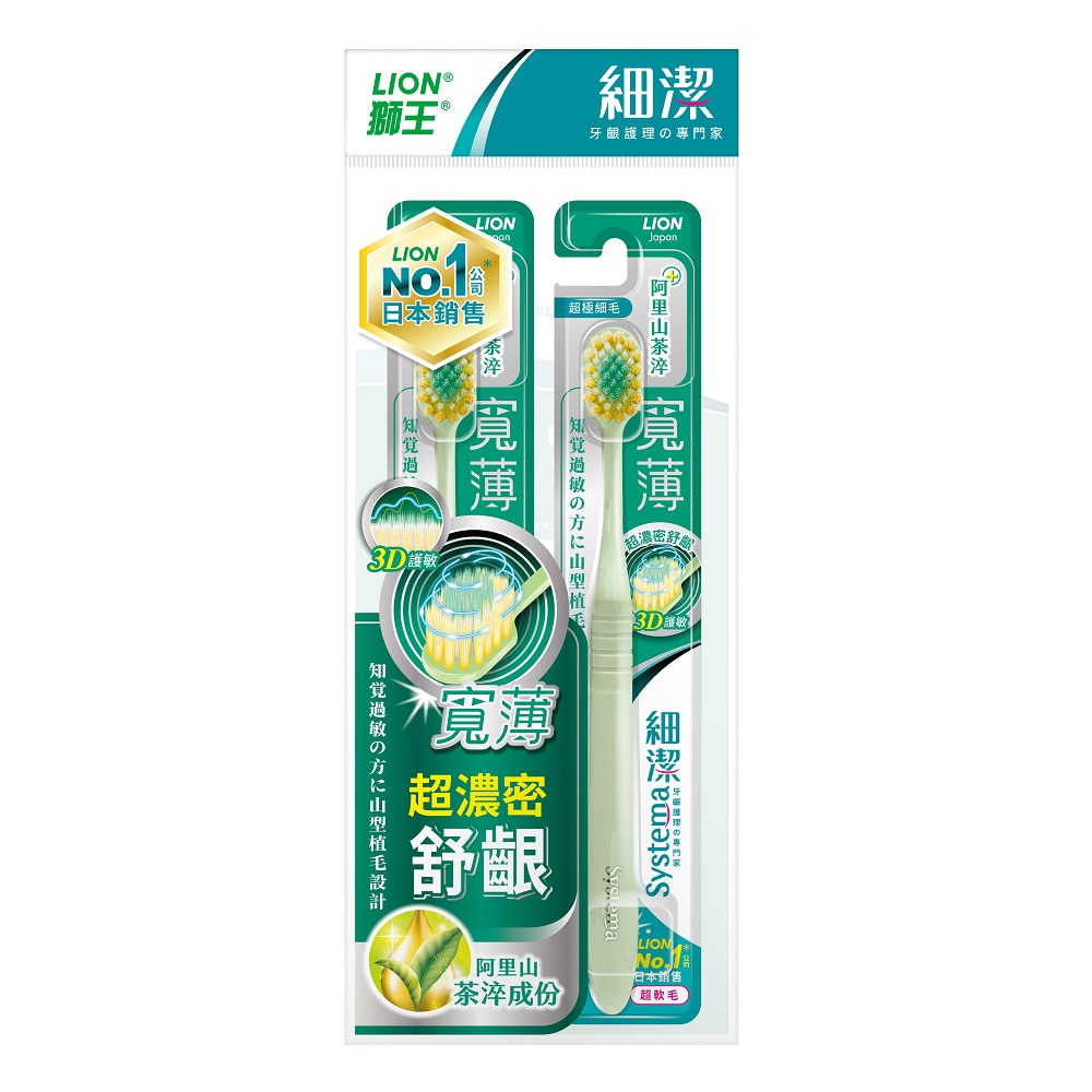 獅王細潔寬薄牙刷茶究柔護2入 <1PC支 x 2 x 1SET組>