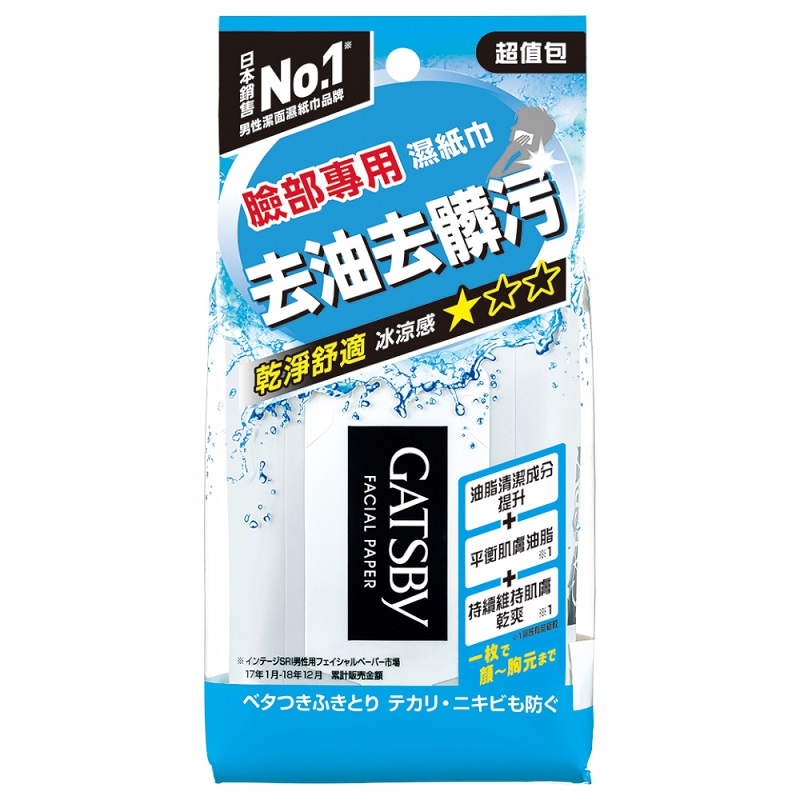 GATSBY潔面濕紙巾大包裝 <42PC張 x 1 x 1PC包>