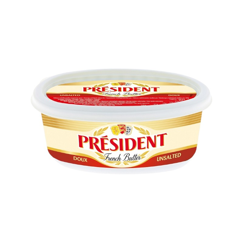 總統牌奶油,完全以牛奶及鮮奶油所製成;一個250公克的奶油約等於5.5 公升的牛奶! 豐富的乳香風味,更是讓各式料理益加美味的因素! 奶油中的脂肪酸易被人體消化,其消化係數高達 97%,適時享受美味無肥胖疑慮。 飽含維生素A、D、E、K。