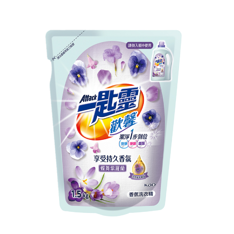 【家樂福】一匙靈歡馨香氛洗衣精補充包-蝶舞紫羅蘭[箱購] 1.5Kg公斤 x 6袋