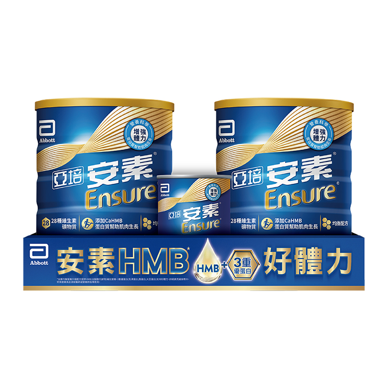 亞培安素優能基添加CaHMB,以先進營養科學為基礎,可提供均衡營養以及必需營養素,符合衛福部每日飲食建議之三大營養素比例(熱量%),增強體力。