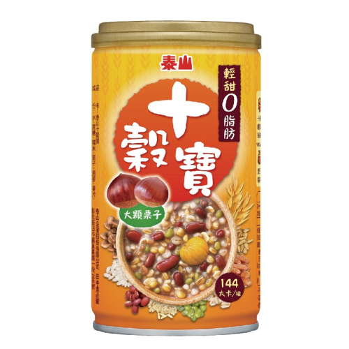 商品名稱 泰山十穀寶 內容物成份 水、蔗糖、糯米、栗子、燕麥、麥片、糙米、蕎麥、花豆、綠豆、紅豆、小麥、香料(含焦糖色素) 內容量 330g/罐 固形量 165g/罐 營養標示 每一份量330公克,本包裝含1份 熱量144大卡、蛋白質5公克、脂肪0公克、飽和脂肪0公克、反式脂肪0公克、碳水化合物31公克、糖25公克、鈉40毫克 注意事項 過敏源提醒:本產品含栗子、燕麥、麥片、小麥 開罐前請搖均勻,請勿直接入微波爐加熱,保溫請勿超過72小時(60℃)。附湯匙蓋方便食用,請小心使用。罐蓋請小心開啟避免割傷 原產地(國) 台灣 保存期限 常溫下2年 有效日期 距有效日期至少大於30日以上(以實際包裝標示為準) 廠商名稱 泰山企業股份有限公司 廠商電話 0800-079-080 廠商地址 彰化縣田中鎮興工路6號 投保產品責任險字號 132709AKP0000079(新光產物保險) 食品業者登錄字號 N-159661701-00000-6