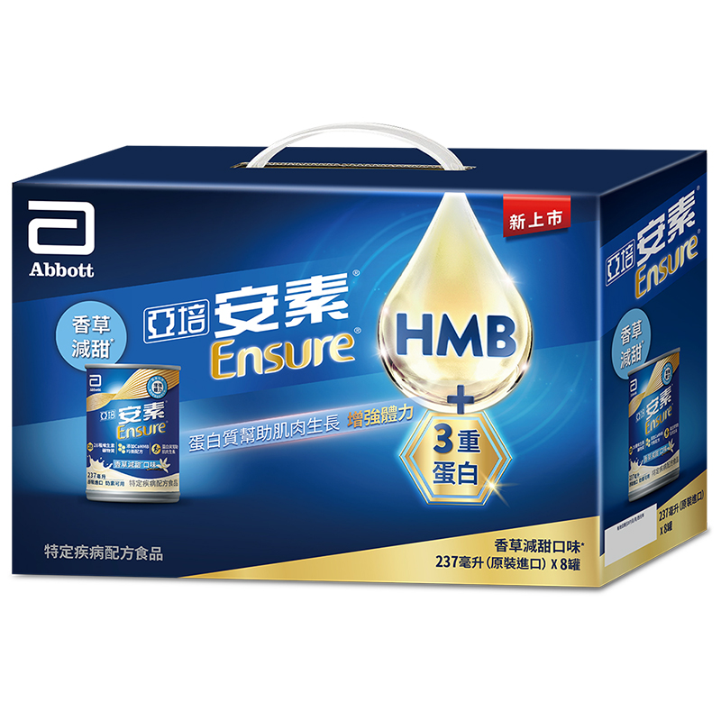 亞培安素升級配方添加CaHMB,以先進營養科學為基礎,可提供均衡營養以及必需營養素,符合衛福部每日飲食建議之三大營養素比例(熱量%)。
