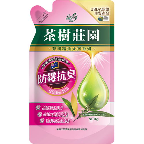 【家樂福】茶樹莊園-茶樹天然濃縮消臭洗衣精補充包[箱購] 800g克 x 12包