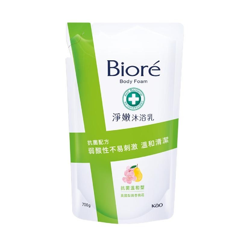 ★ Biore 溫和抗菌配方 英國梨與杏桃花 ★ \ 弱酸性不易刺激 溫和清潔/ 天天溫和屏護肌膚 洗出健康柔嫩膚質 【抗菌淨味】 含綠茶、尤加利菁華的弱酸性抗菌配方,溫和抗菌,私密處也可以安心清潔,並洗淨身體惱人異味 【溫和淨肌】 全新升級日本淨膚鎖水技術,溫柔洗淨皮脂與髒污,潔淨肌膚同時補給水分,快速鎖住關鍵水,提升肌膚保水力 【一沖即淨】 超細緻保水泡泡,洗時不帶走水分,乾淨清爽不黏膩,一沖即淨不易殘留