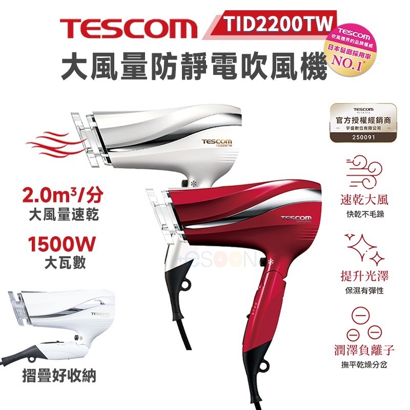 🌼🌵『 TESCOM TID2200TW 防靜電大風量吹風機(白 / 紅)』🌵🌼