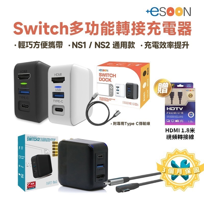 NS1專用款 白/黑:支援Switch Oled、steam deck、iPad、部分手機(需具有輸出功能)...等影像傳輸及充電