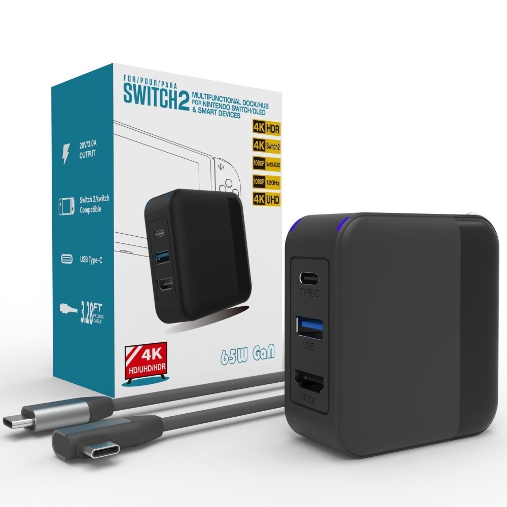 NS1/NS2通用款65W:支援Switch Oled、Switch 2 (支援最新 NS2系統)、steam deck、iPad、Macbook、部分手機(需具有輸出功能)...等影像傳輸及充電