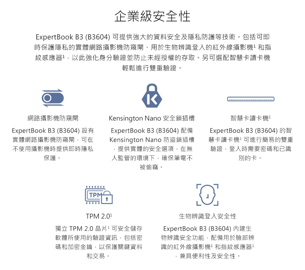 網路攝影機:1080p FHD camera with IR function to support Windows Hello;With privacy shutter