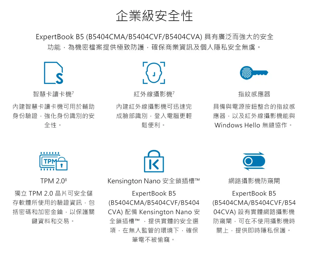 網路攝影機:1080p FHD camera with IR function to support Windows Hello;With privacy shutter