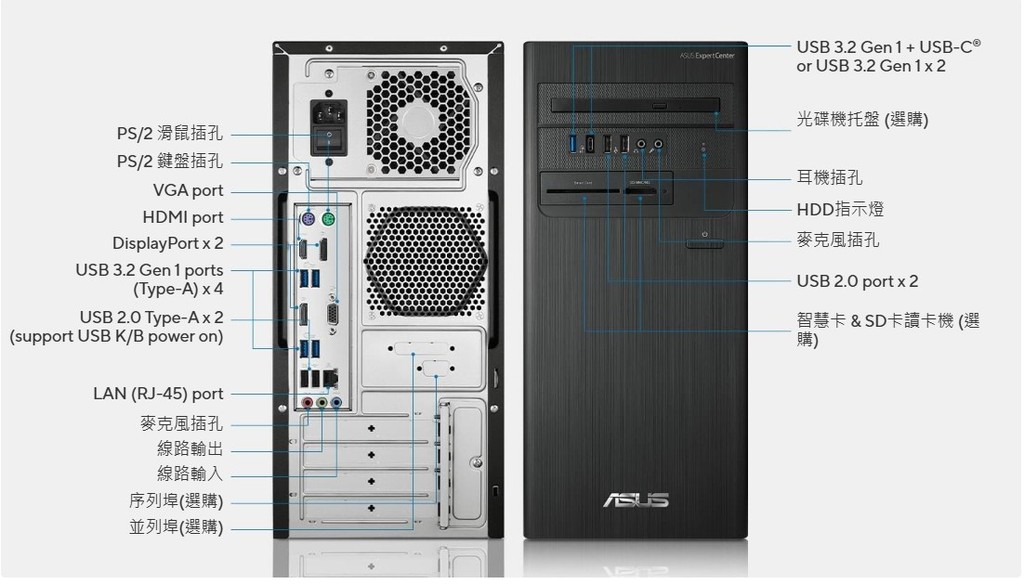 1 x Smart Card Reader & SD Card Reader (optional)(本案提供DVD-RW/Card Reader)