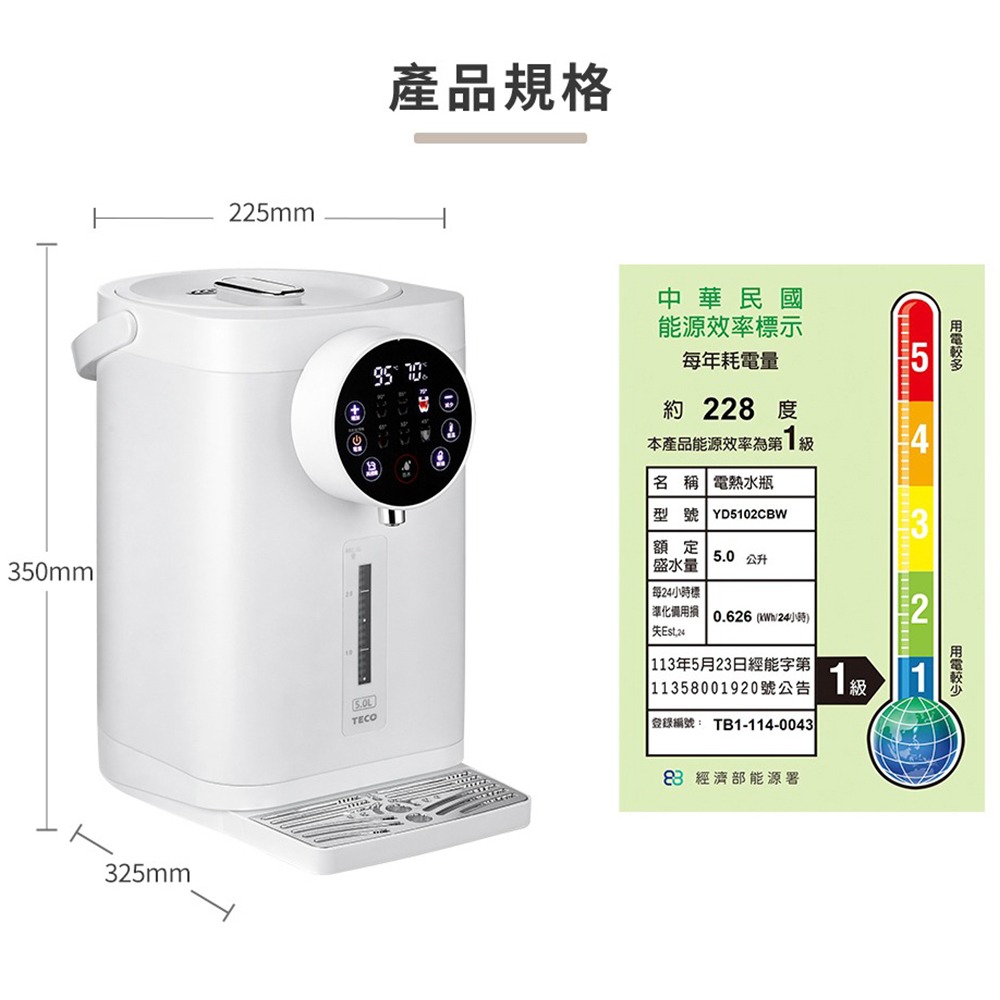 🌼🌵『 東元TECO 5L VE微電腦熱水瓶 YD5102CBW』🌵🌼