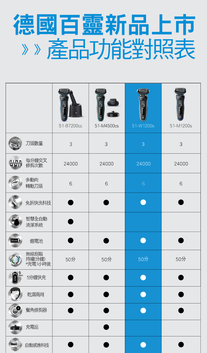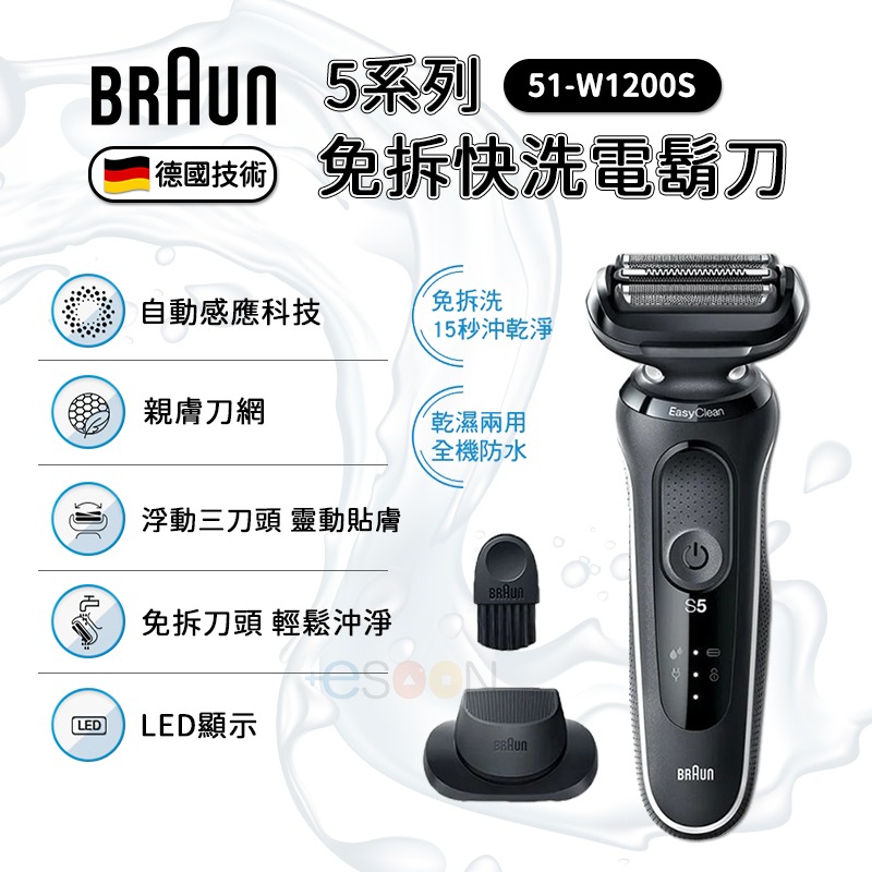 - 品名BRAUN 免拆快洗電鬍刀 51 W1200s