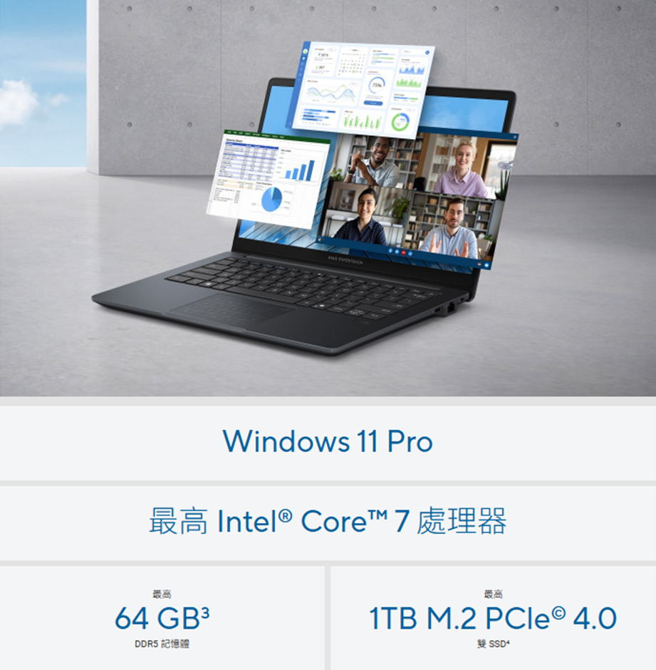 硬碟:512GB M.2 2230 NVMe™ PCIe® 4.0 SSD/另提供 1個 M.2 SSD 插槽(2280)