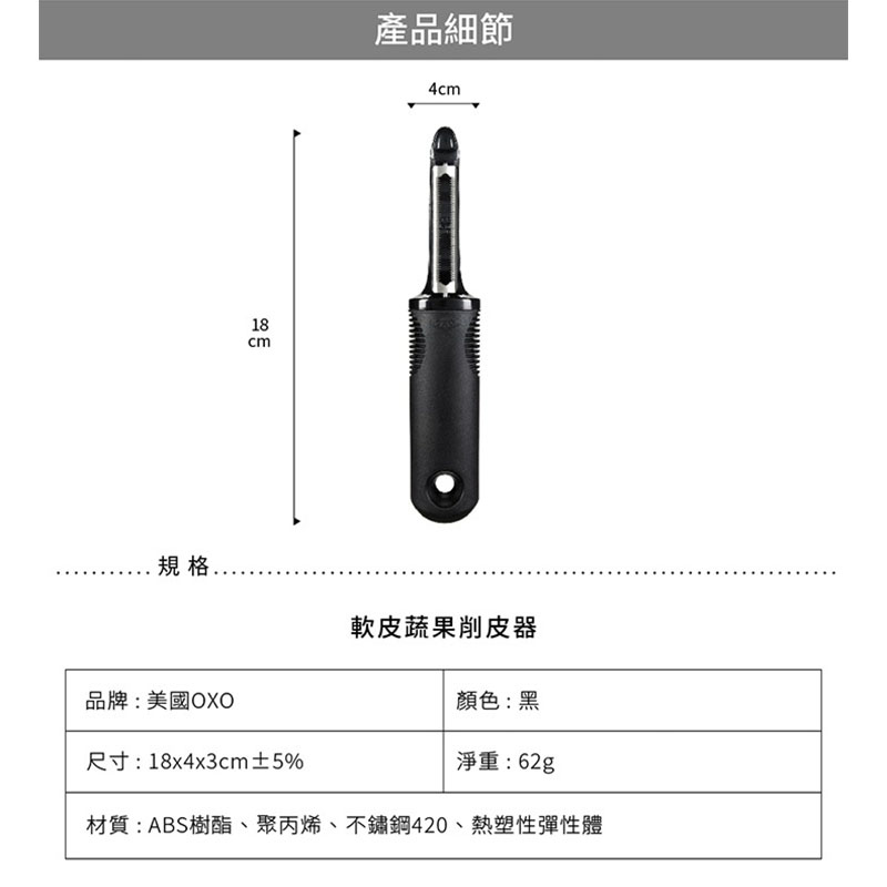 材質:ABS樹酯、聚丙烯、不鏽鋼420、熱塑性彈性體