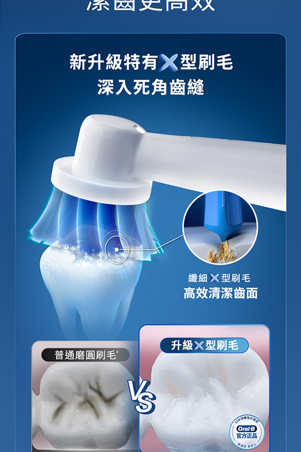 ⭐ NEW全新 X型刷毛設計,更能深入牙齒表面縫隙,去除10倍牙菌斑