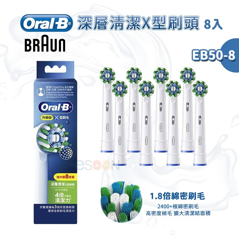 德國百靈 Oral-B 深層清潔X型刷頭(8入)EB50-8【現貨免運】電動牙刷 百靈電動牙刷刷頭 牙刷頭 歐樂b 牙刷