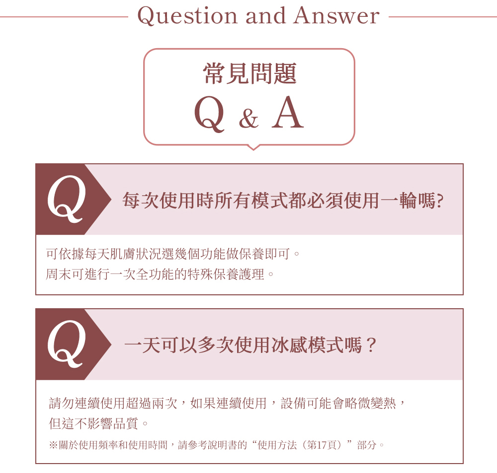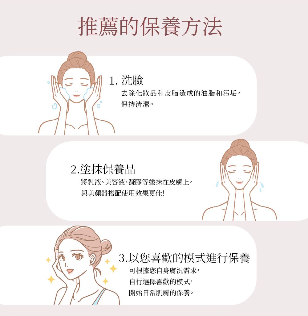 可依據每天肌膚狀況選幾個功能做保養即可。周末可進行一次全功能的特殊保養護理。